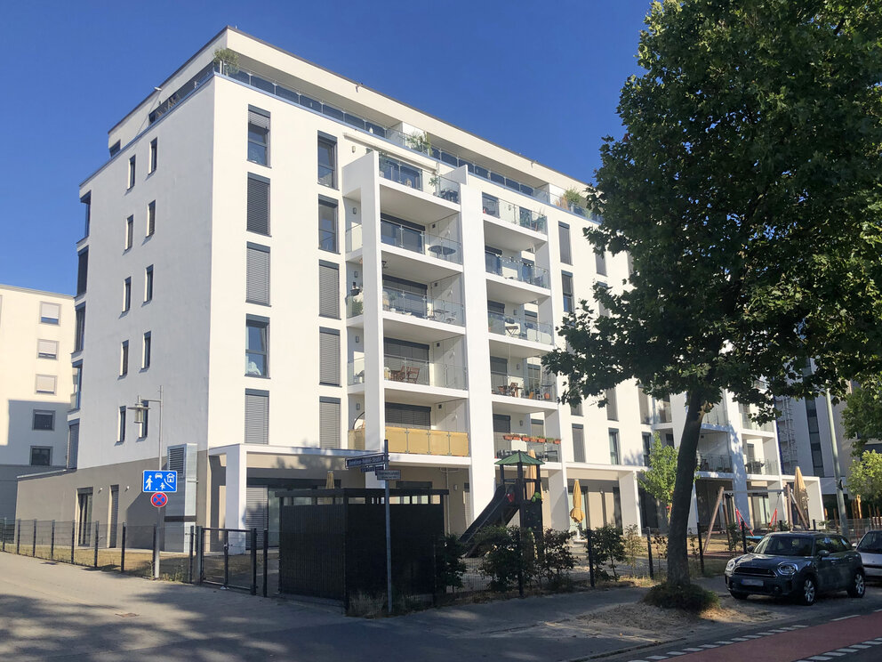Neubau eines Mehrfamilienhauses mit 23 Wohneinheiten und einer Kindertagesstätte im EG, sowie Errichtung einer Tiefgarage mit 27 Stellplätzen.